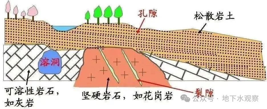 (1) 水透性。该性质指流水在重力影响下对岩石的穿透能力。岩土层渗透能力的强弱主要和岩土层大大小小的缝隙相关。越松散的岩土层缝隙越多越大, 所以水透性比较强。坚硬的岩土层通常缝隙很少, 所以水透性通常很差。