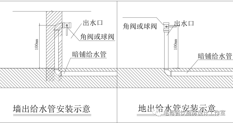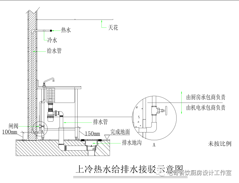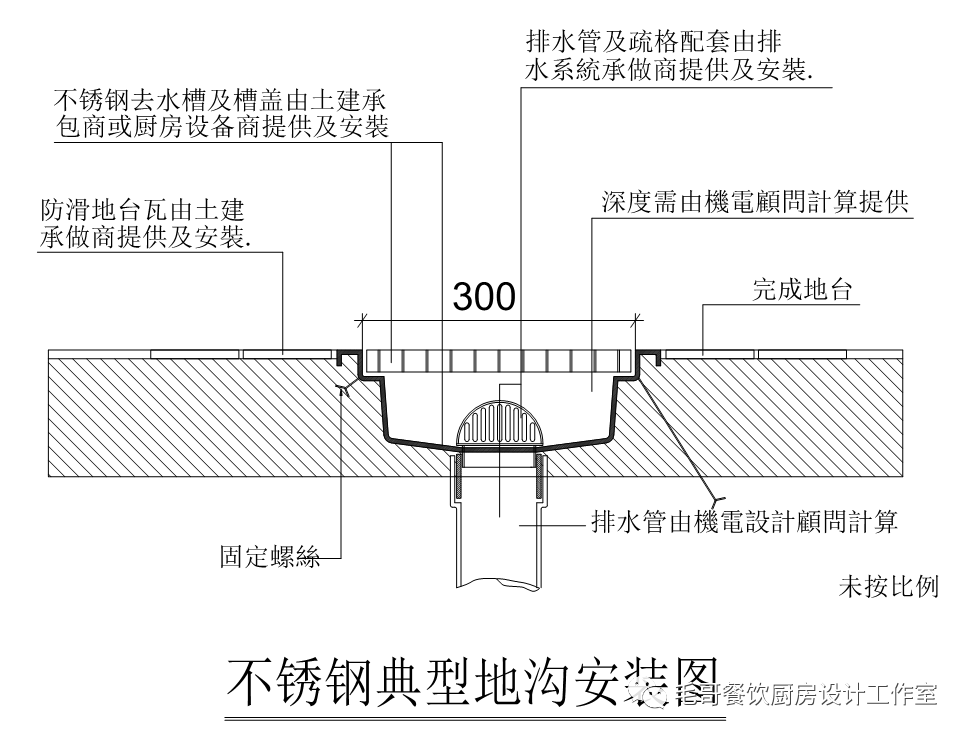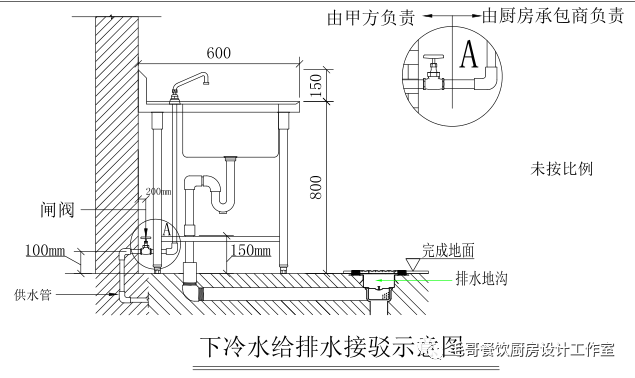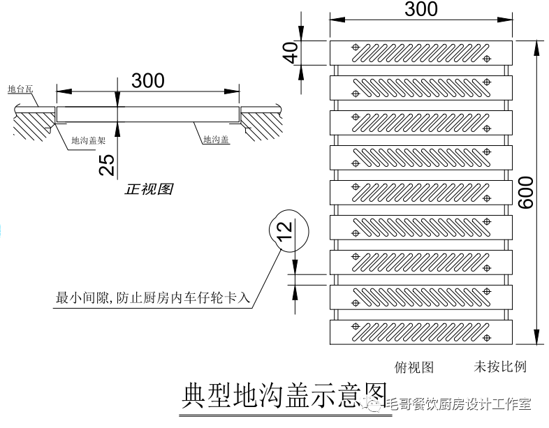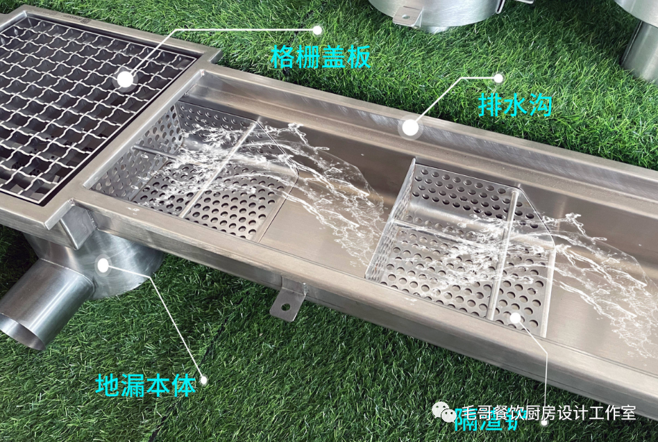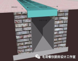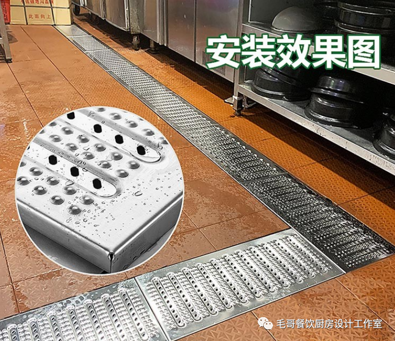 2、只需在有大量出水的区域做水渠,如炉灶区域、水台粗加工间、洗碗间等。