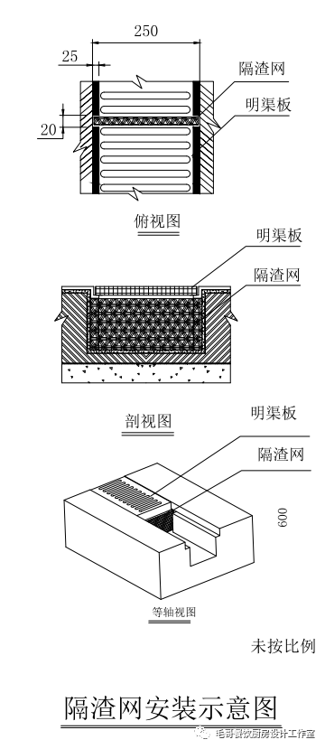 4、做暗沟水渠的拐弯口或交汇处应做好检修口,坡度比较缓的地方应采用台阶式形成落差,能更有效的防止排水倒灌。