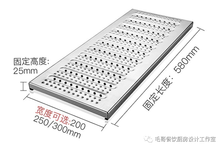 餐饮厨房排水沟宽度通常在200mm—250mm,排水沟的宽度不宜过宽。考虑及时清理和护理的及时性,餐饮厨房的不锈钢排水沟在排水沟阴角都会通过圆弧加工处理,这样做的目的是最大水平上能够防止污物的堆积。可活动式的漏斗设计,清洁底部杂物更加的彻底。