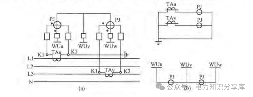 测量仪表回路是指通过电流互感器与电流表连接的回路或通过电压互感器与电压表连接的回路。下图是经过互感器接人的测量仪表回路的接线图和展开图。图中有一块三相三线有功电能表其电流线圈与电流互感器的二次绕组连接:电压线圈与电压互感器的二次绕组连接,电压小母线用WUu、WUv、WUw表示,它与主电路供电母线上电压互感器的二次绕组的引出线端相连接。