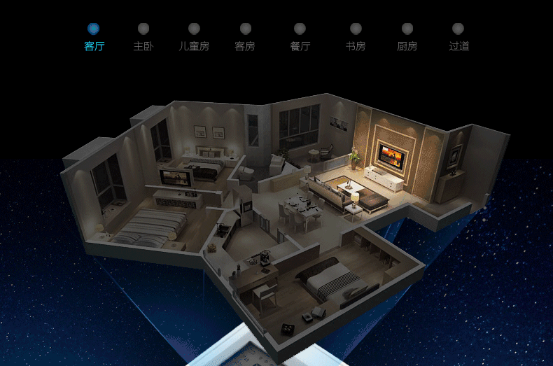 智能家居可实现的场景多种多样,如智能照明、智能窗帘、智能起夜、智能门锁、智能感应、智能空调、远程控制……