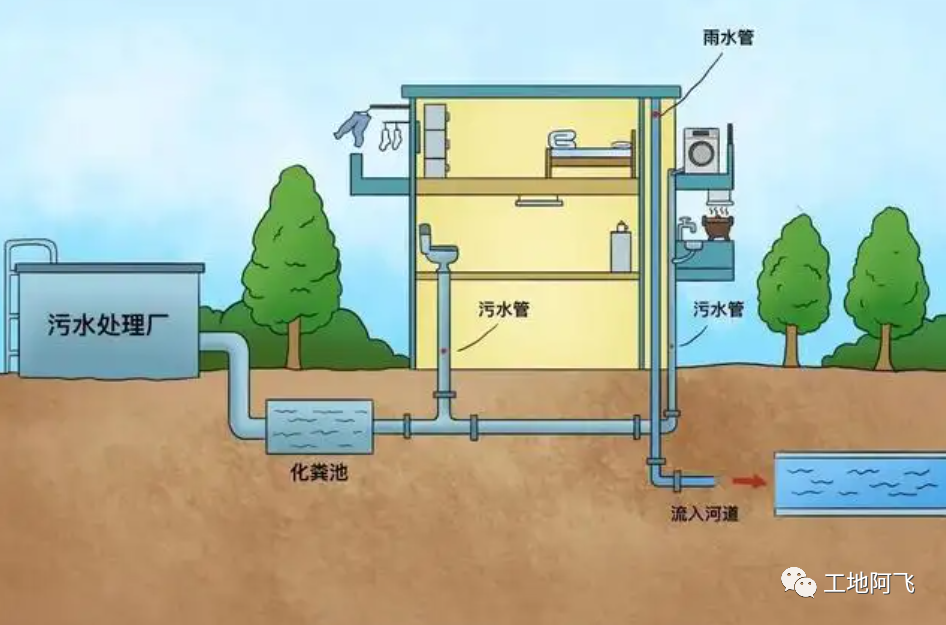 室外排水采用污、废水合流(特殊情况除外),雨、污分流制;室外污水按地方要求处理后排入市政污水管;室内排水采用污、废合流制;当排水管道不能以重力排入市政排水管道时,应设置排水泵房。