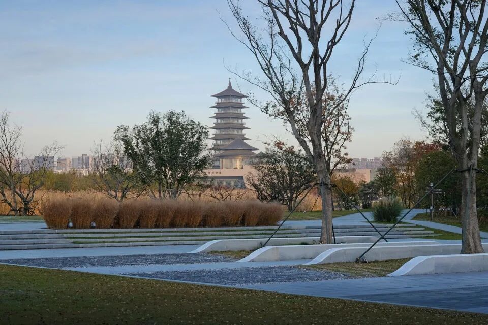 ▲ 开放的运河舞台与运河、湿地与大运塔形成完整画面