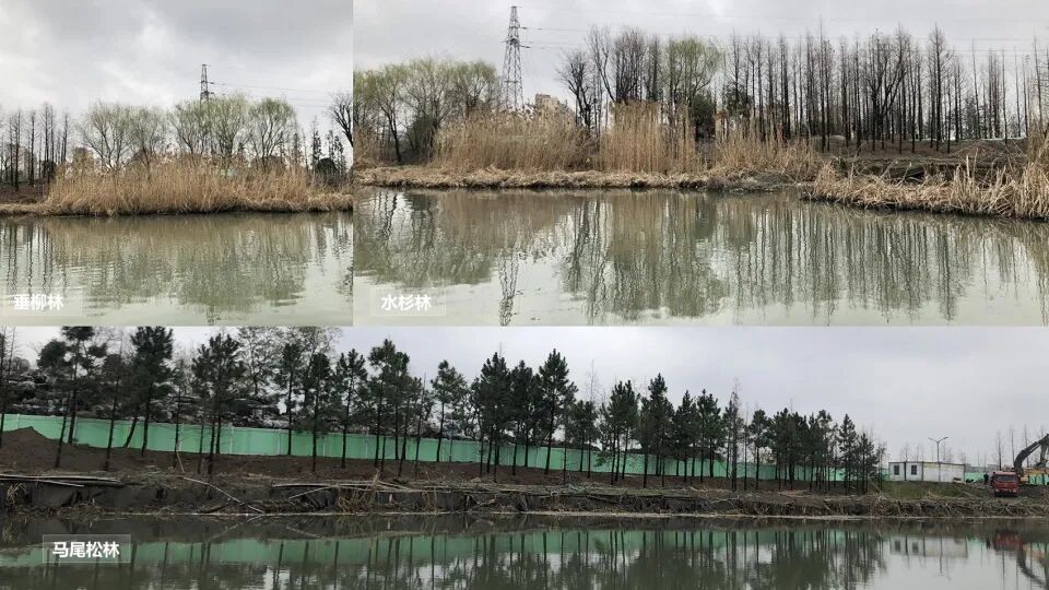 ▲驳岸处植物做减法,绿道后退、滨水界面形成缓坡
