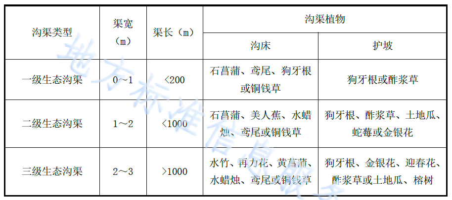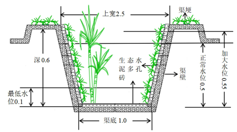 此外,参照四川地标,生态沟渠边坡坡度不宜超过60°,底部宽度要求在1.0~3.0m之间,深度在0.5~1.5m之间,沟渠长度至少50m。