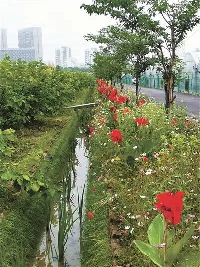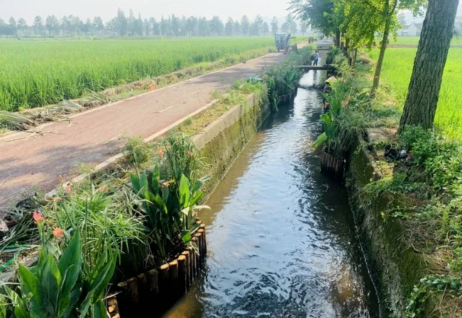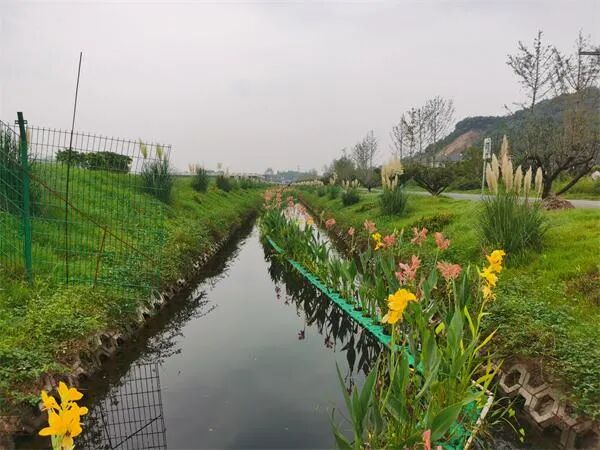 在沟渠建设过程中,将生态修复与景观设计紧密结合,像景点一样去规划建设,沟渠内种植的蒲草、荷花、美人蕉等生态植物,有效提升了农田的“颜值”。一条沟渠就是一条风景带,勾勒出美丽田园风光。