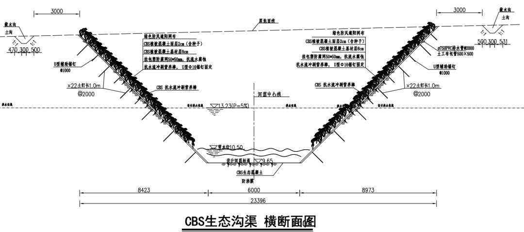 生态沟渠:采用生态混凝土,植物根系自然穿透生长