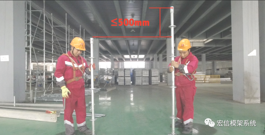 采用套筒连接或者内插棒连接进行立杆接头搭设;相邻立杆接头位置,高度宜错开≥500mm