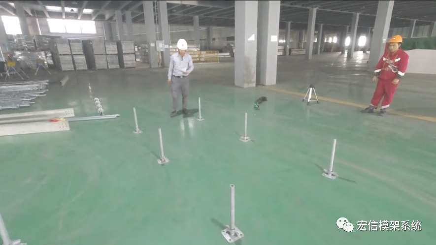 1、放线定位,摆放可调底座