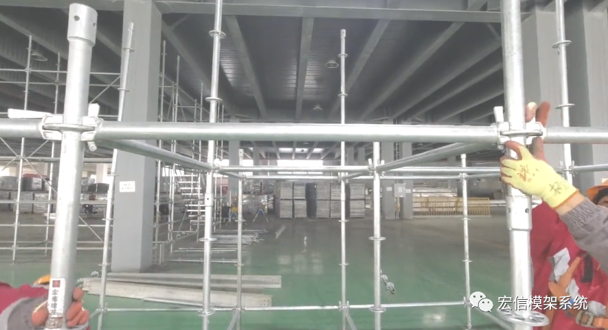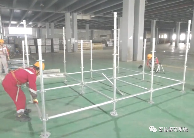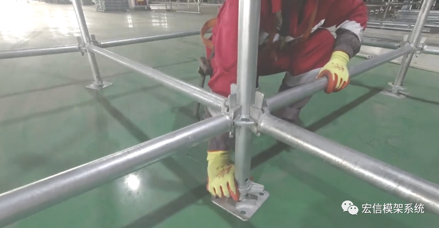 3、安装首层横杆(扫地杆)