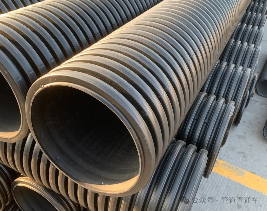 完全由高密度聚乙烯(HDPE)制成,外壁呈现波纹结构,内壁光滑平整。双壁设计不仅可以增强管道的抗压能力,还能有效减轻管道重量。