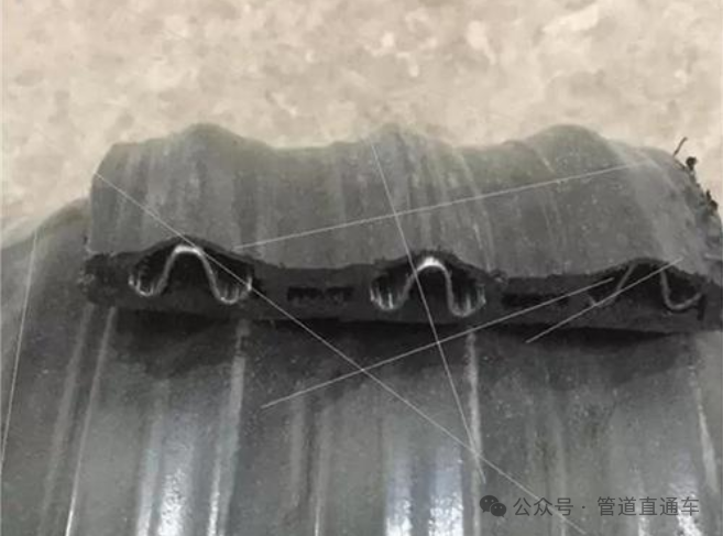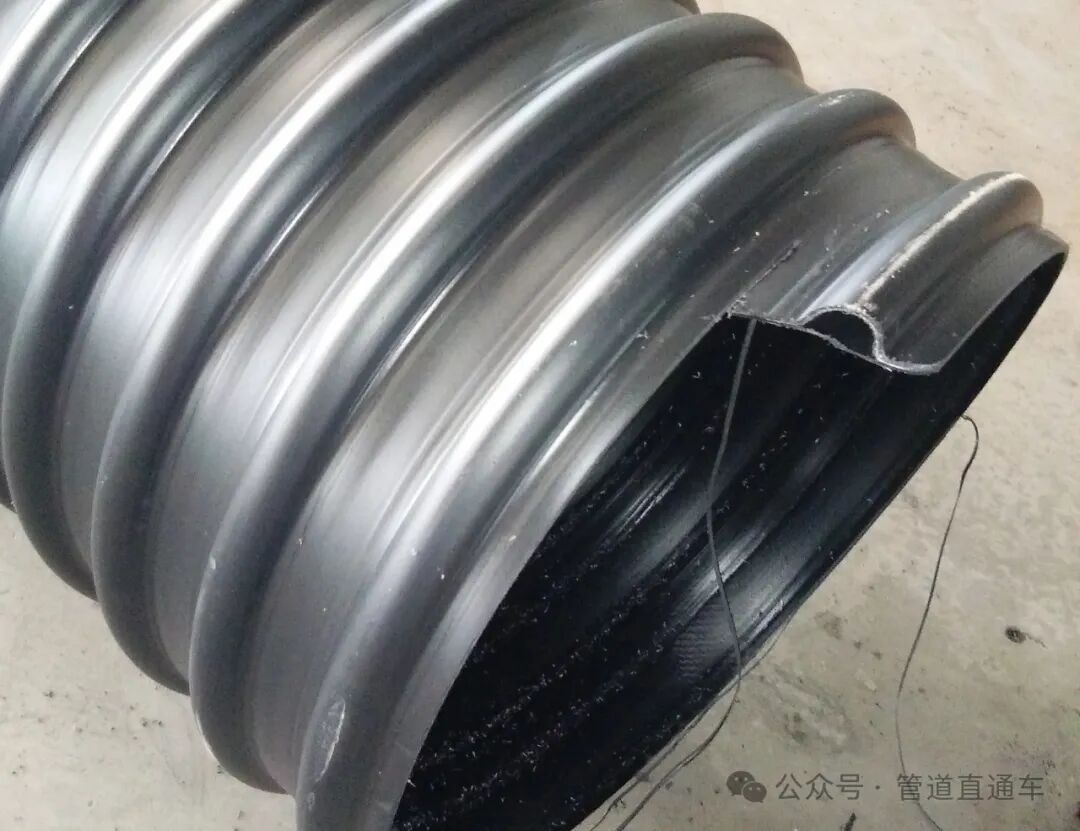 与双壁波纹管类似,外层同样是波纹结构,但在波纹中内衬“U”型钢带,钢带被HDPE材料包覆,形成复合结构。
