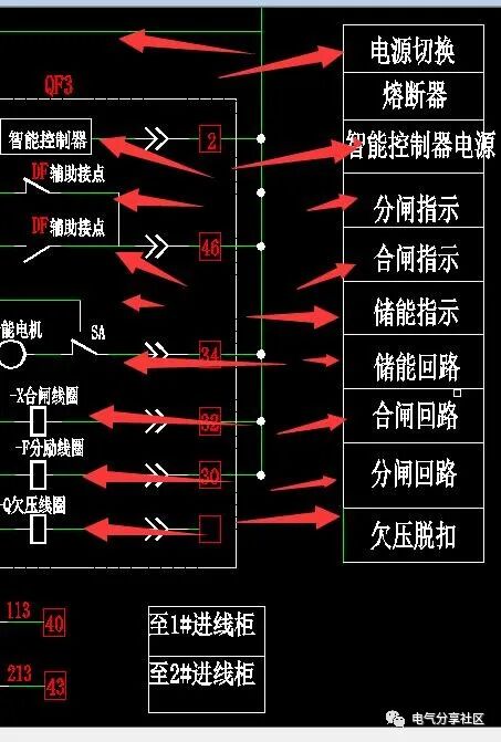 如图为断路器的控制回路,也是整个原理图中的重点,我们来一起看看。