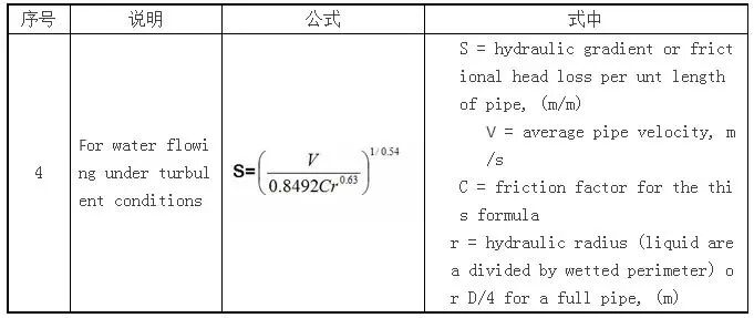 (2)海曾-威廉(Hazen-Wllliams)公式