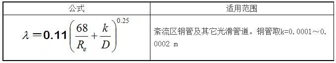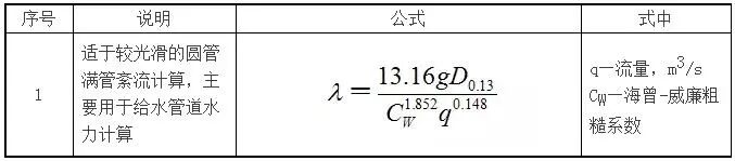 1)沿程阻力系数计算公式