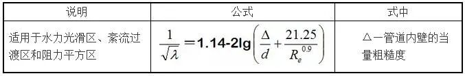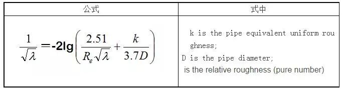 柯尔勃洛克-怀特公式适于各种紊流,是适用性和计算精度高的公式之。公式为: