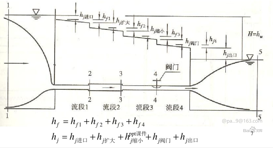 ②局部阻力和局部水头损失(急变流的水头损失):当流体运动时,由于局部边界形状和大小的改变、或存在局部障碍,流体产生漩涡,使得流体在局部范围内产生了较大的能量损失,这种能量损失称作局部水头损失,用hj表示。