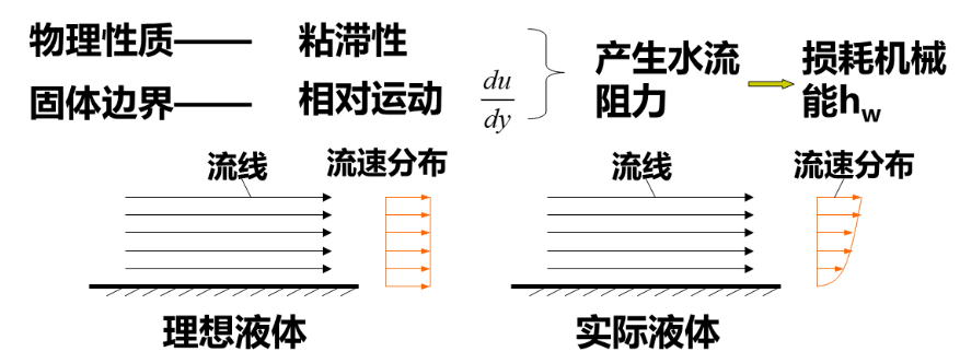 本章节主要学习前面伯努利方程中的hw,主要解决水头损失的计算和学习水流内部存在两种截然不同的流动形态。