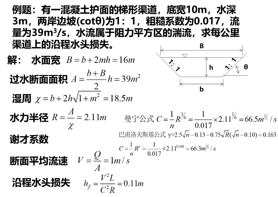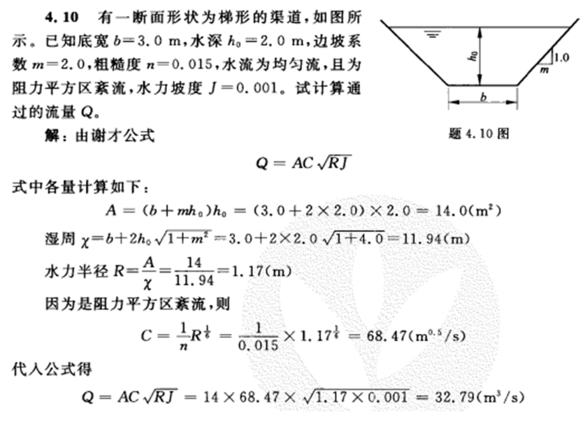 例题2:这道主要考察谢才系数求解,期末考试也可能会考。