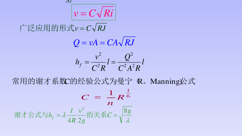 2、谢才公式可适用于不同流态和流区既可适用于明渠水流也可应用于管流。