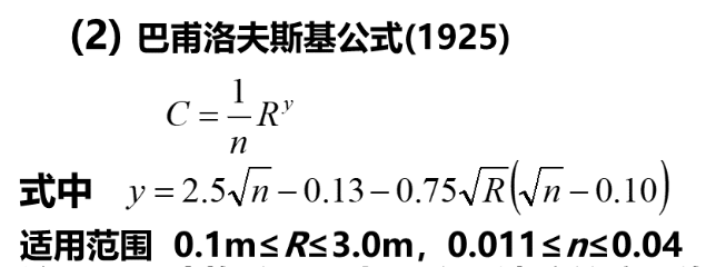 谢才总结了明渠均流的实测资料,提出计算均流的经验公,后人称为谢才公式: