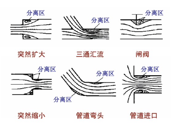 在做计算、设计时,产生局部水头损失的情况有以下: