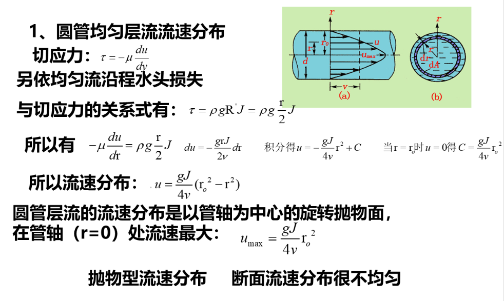 沿程水头损失和切应力的关系:(不算太重点,记个结论就行了)
