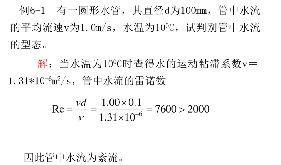 临界雷诺数:对同类型的流动,临界雷诺数是常数。有压管流的临界雷诺数为2000或2300。