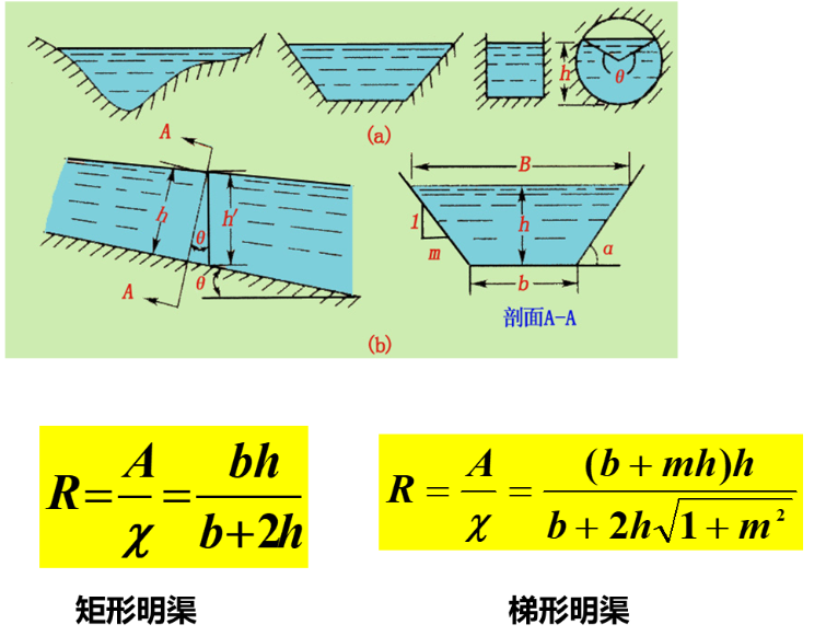还有一些其他截面的水力半径计算:(理解就行,不用背)