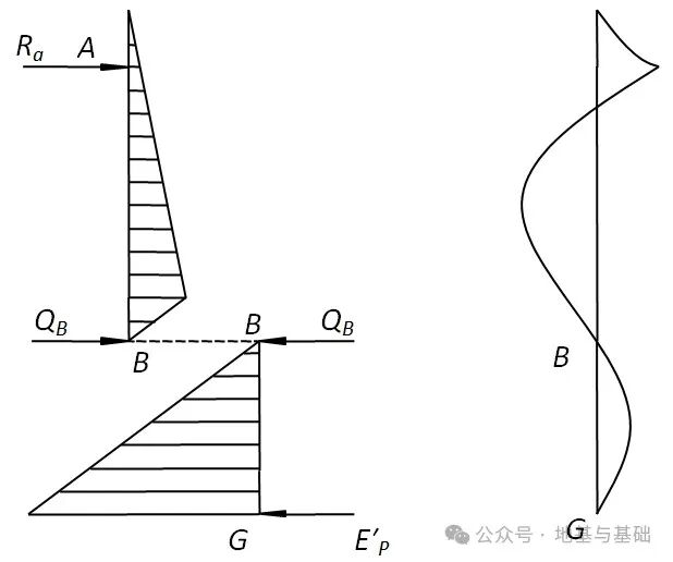 (4)考察AB和BG段,计算桩身最大弯矩,其位置应在剪力为零处。