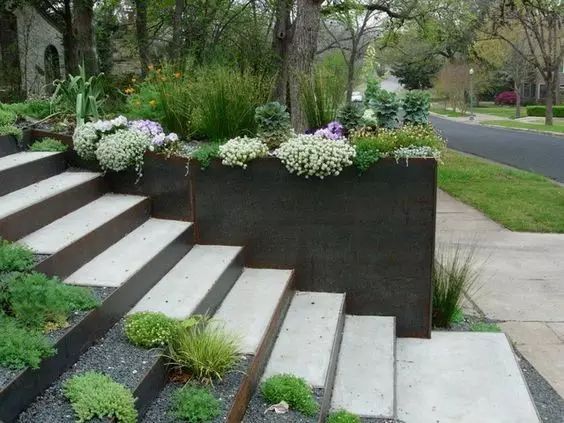 利用挡土墙进行台地花坛的设计,打造植物为主景的庭院景观。在这里,花卉爱好者可以尽情发挥自己的想象力和热情,打造一个花的天堂。