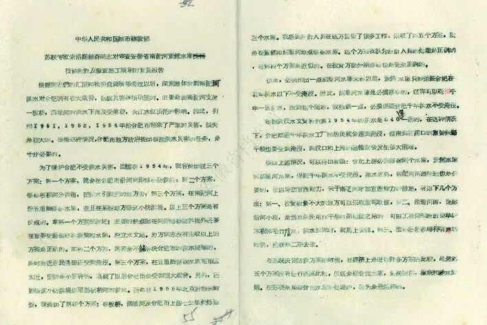 “根据同志们的汇报和我亲自到现场看过以后,深刻地体会到南淝河洪水对合肥确有很大威胁,造成灾害是很明显的。主要由南淝河支流之一——板桥(河)、四里河的洪水下泄及受巢湖、长江水位顶托的影响。因此,引起1951,1952,1954年(洪水)给合肥市带来了严重的灾害,损失是很大的。根据这种情况,合肥市地方政府提出根除洪水灾害的任务,是十分必要的。”在安徽省档案馆馆藏档案1957年《中华人民共和国城市建设部苏联专家索洛诺维奇同志对审查安徽省南淝河董铺水库技术设计及检查施工现场的意见报告》中,这位苏联水利专家提出来自己的设计方案。