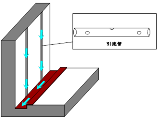 ① 根据现场渗漏情况,在墙脚部位或大面明水较多的部位新做导水槽;