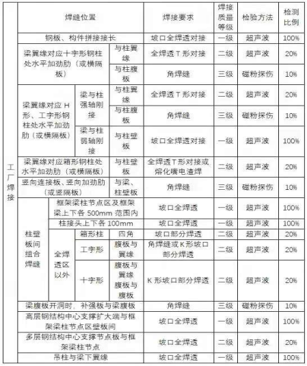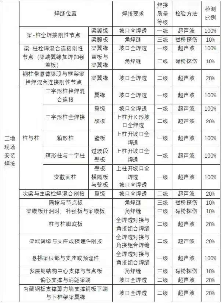 6、宜对工厂焊接、工地焊接的方式,区别设定等级及检验方法。