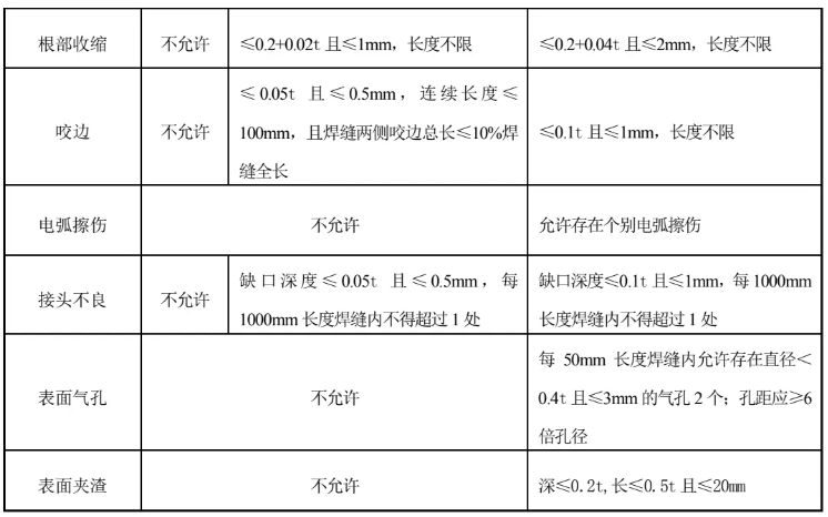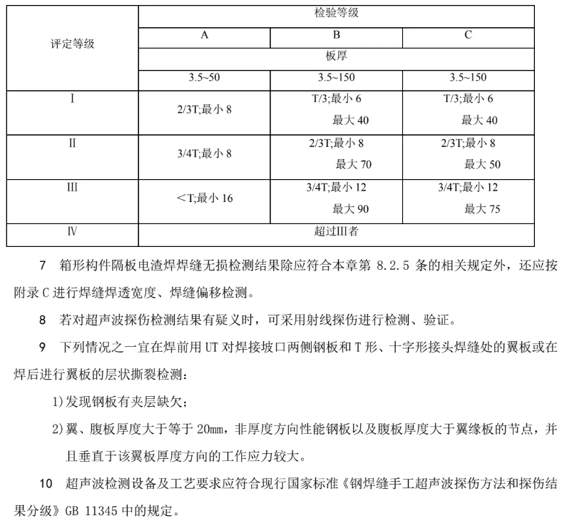 7、常遇焊缝焊接质量等级及其检测要求见下表。