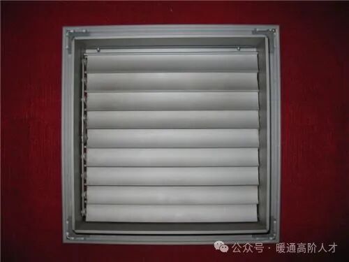 自垂百叶式风口具有正压的空调房间自动排气,通常情况下靠风口的百叶自重而自然下垂,隔绝室内外的空气交换,当室内气压大于室外气压时,气流将百叶吹开而向外排气,反之室内气压小于室外气压时,气流不能反向流入室内,该风口有单向止回作用。
