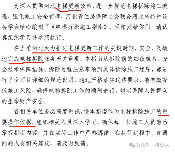 而就在今天,河北省特种设备学会和河北省住房保障协会再次联合发布“河北省住宅老旧电梯更新项目第二次询价公告”和《电梯拆除施工指南》。看来对老旧电梯拆除工作要提上日程。