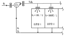 如图,设第一洁净室的含尘浓度N1=3 pc/L,第二洁净室N2=3000pc/L。