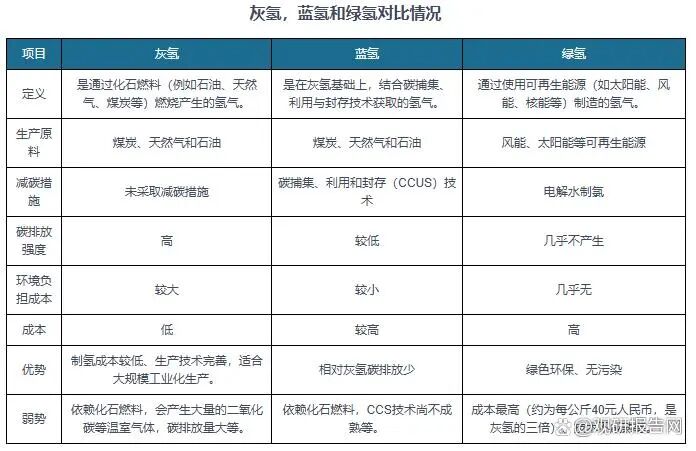 观研报告网介绍,根据生产来源和生产过程中碳排放的不同,氢气可分为灰氢、蓝氢、绿氢。其中,绿氢是通过使用可再生能源(如太阳能、风能、核能等)制造的氢气,生产过程中基本没有碳排放,因此也被称为“零碳氢气”或“绿色氢气”。