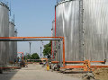 常做成圆筒形结构。罐体由顶盖、壁板和底板三部分组成。一般用于储存重质油品。这类油罐具有省钢材、耐久性好,维修费用低和油品损耗小等优点,但施工工序较多、周期较长。半地下式或地下式钢筋混凝土油罐还具有防火性能好、罐间距小、壁板温差小等优点。当油罐容量较大时,多采用预应力混凝土油罐,施加环向预应力,其方法有: