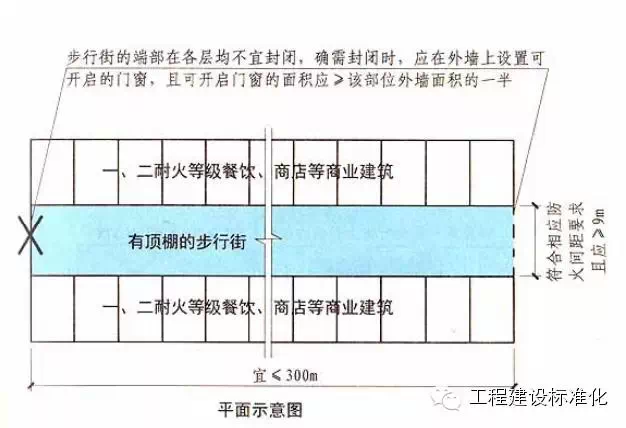 3.步行街的端部在各层均不宜封闭,确需封闭时,应在外墙上设置可开启的门窗,且可开启门窗的面积不应小于该部位外墙面积的一半;