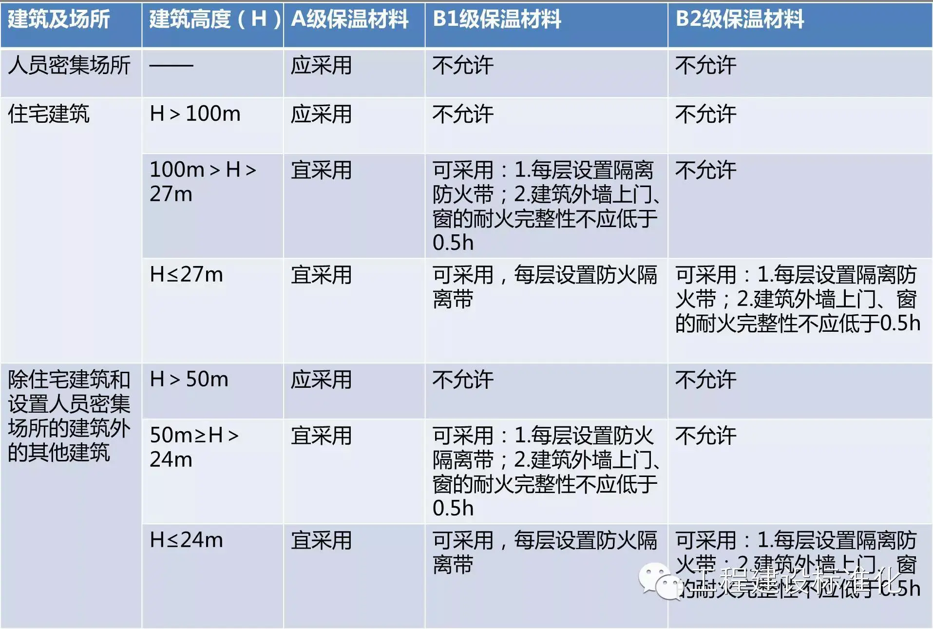 1.对于人员密集的建筑场所,其外墙外保温材料的燃烧性能应达到A级
