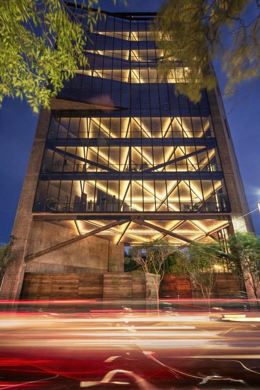 SRDP-IWMC办公楼位于越南Ha Tinh市,由H&P建筑事务所设计。项目面积1307平米,工程造价50万美元。项目所在道路设有多个政府办公楼,建筑成为国际农业发展基金办公总部。由于预算限制,项目使用了原有设施的办公家具。项目考虑因素包括越南当地气候变化情况以及快速城镇化对农村地区的影响。项目理念综合了定耕以及定居,旨在达成三个目标:标志性外观、低成本和快速施工。