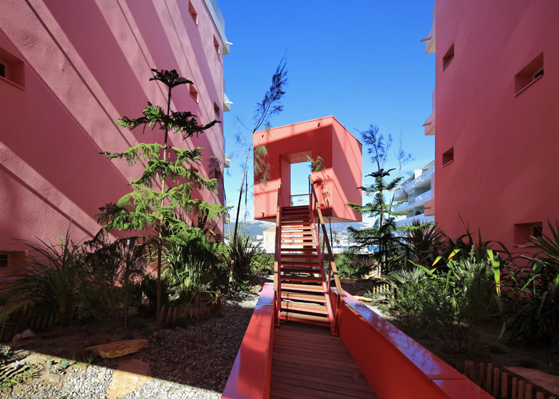 Fran Silvestre建筑事务所设计了位于巴伦西亚的一座带有泳池的住宅。建筑呈现出白色筒状形式,拥有顶层露台。Balint住宅毗邻高尔夫球场,曲面墙壁和厚重的椭圆屋面隐藏了简单的矩形楼面构造,三个楼层包含色彩简洁的起居空间和六间卧室。外立面具有塑料材料般的光泽,添加了坚实的树脂和石材复合覆层,这种材料常用语厨房台面。