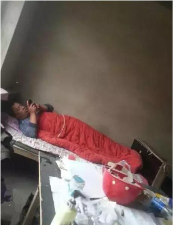 下雨天,机械维修师在被窝里玩手机,其余的也没什么娱乐节目。
