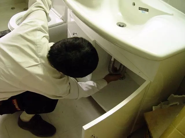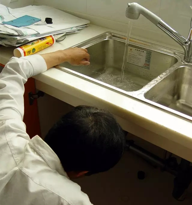 现在装修者买成品橱柜很多,都是由橱柜公司上门安装,但有时也会碰到问题,这里监理就发现下水的管道有渗水现象。