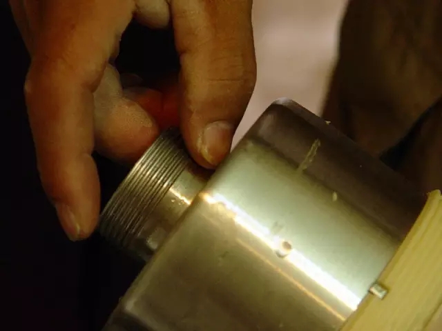引发渗水问题的就是这个衔接着水槽与下水管道的不锈钢部件,底部密封度不够造成渗水现象,看来要去橱柜公司调换了。
