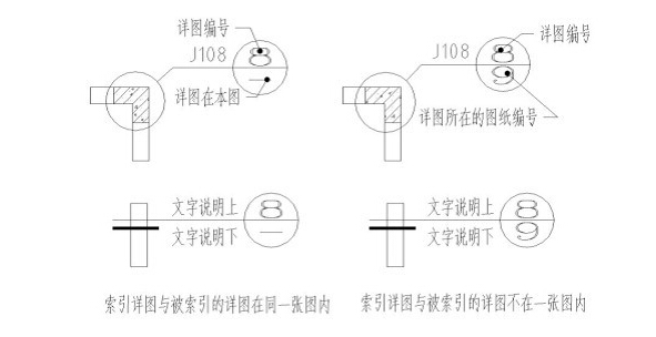 1、是否规范表示了详图索引、详图编号,要在相应的平面、或立面、或剖面中表示索引符号,符号大小要符合制图规范的要求。