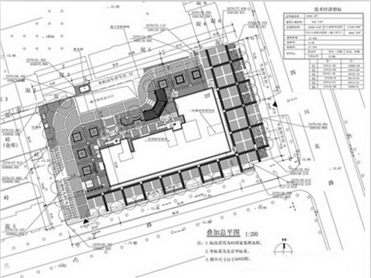 6、是否列出了经济技术指标:总用地面积、总建筑面积、停车位数目(办公楼组要写该项)、建筑密度、容积率、绿化率(要求做到35%-50%,没做到要调整绿地面积)。